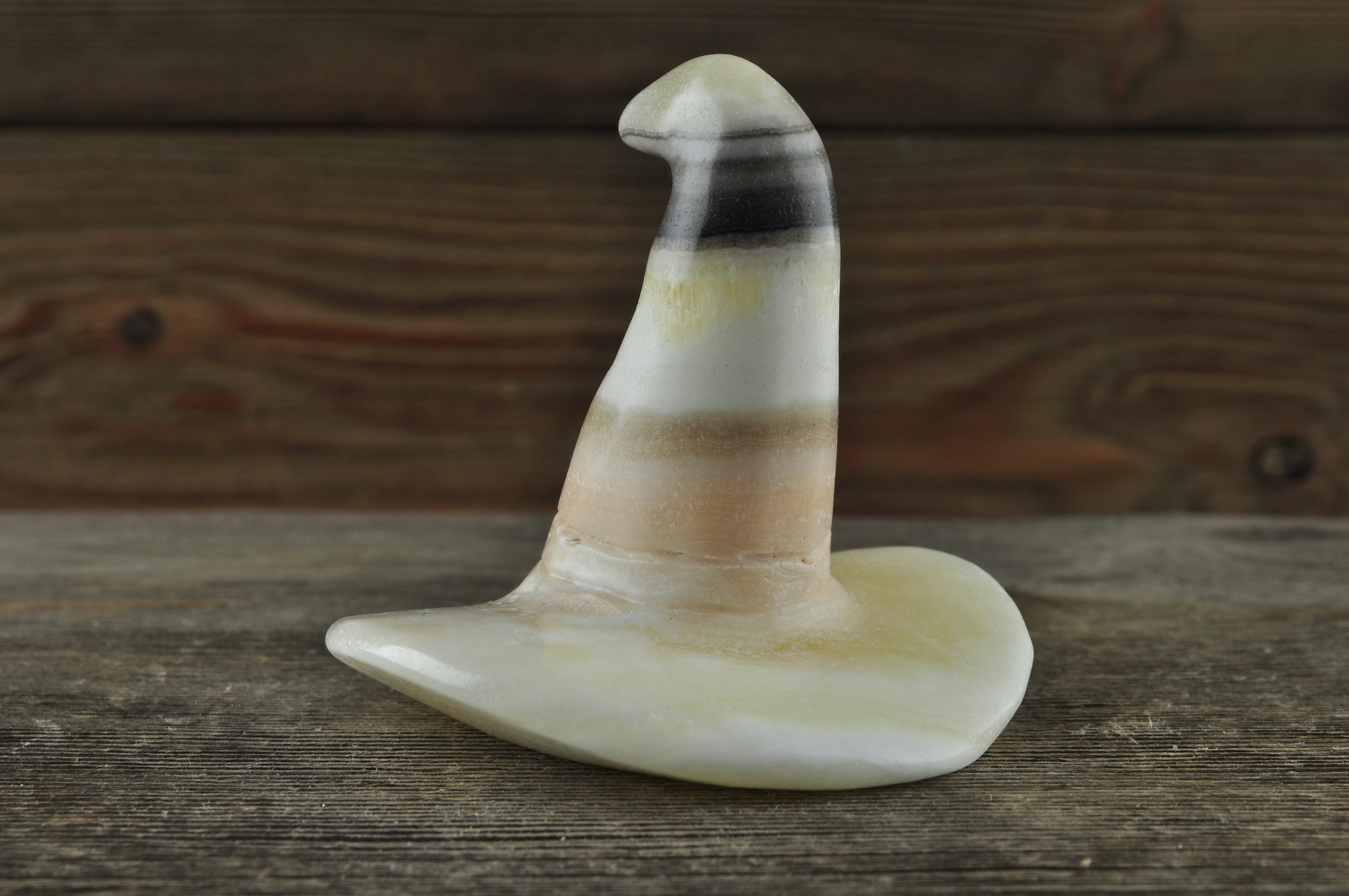 Very Cool Zebra Calcite Crystal Witch Hat, 2.5 inches tall!