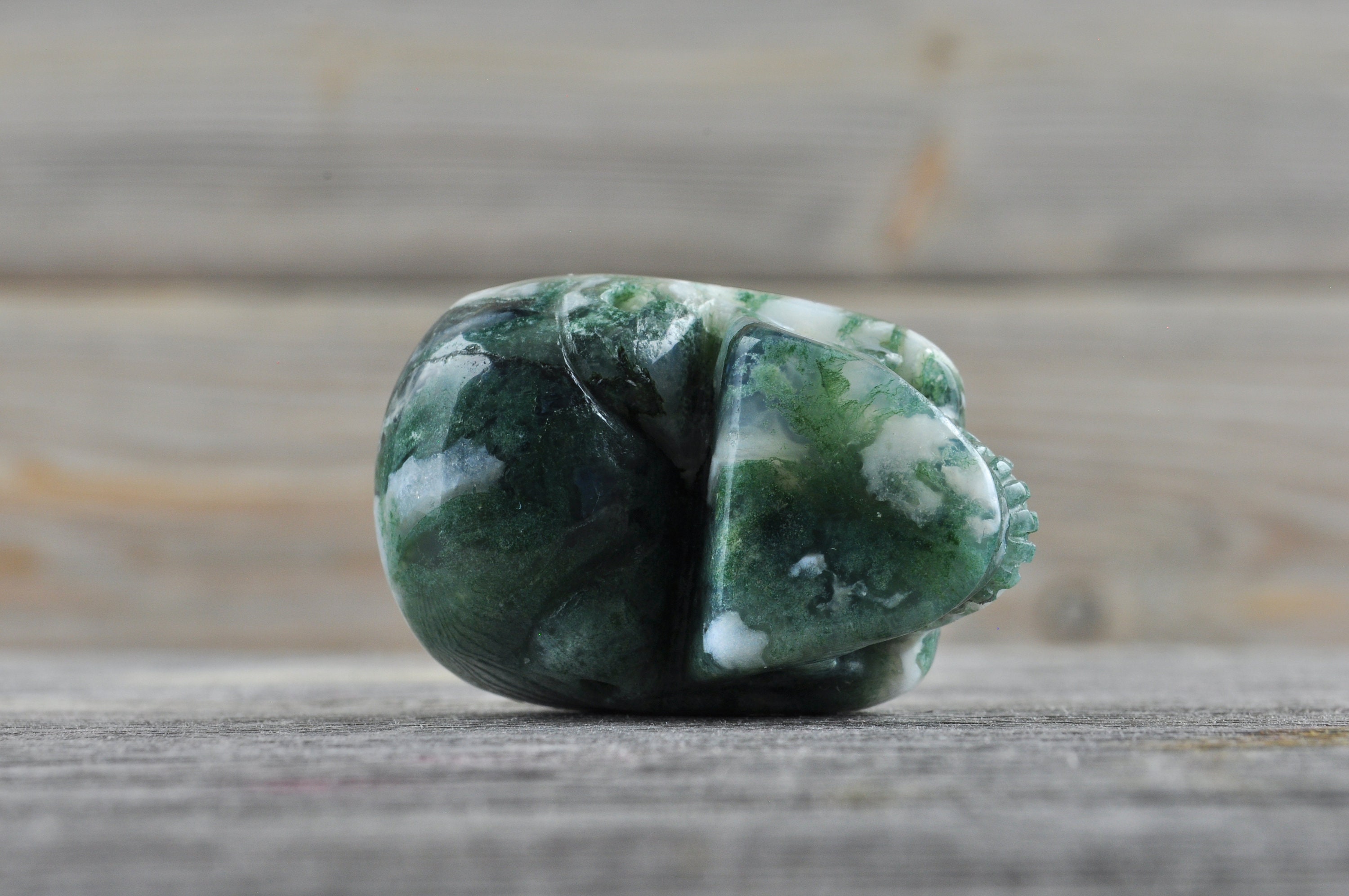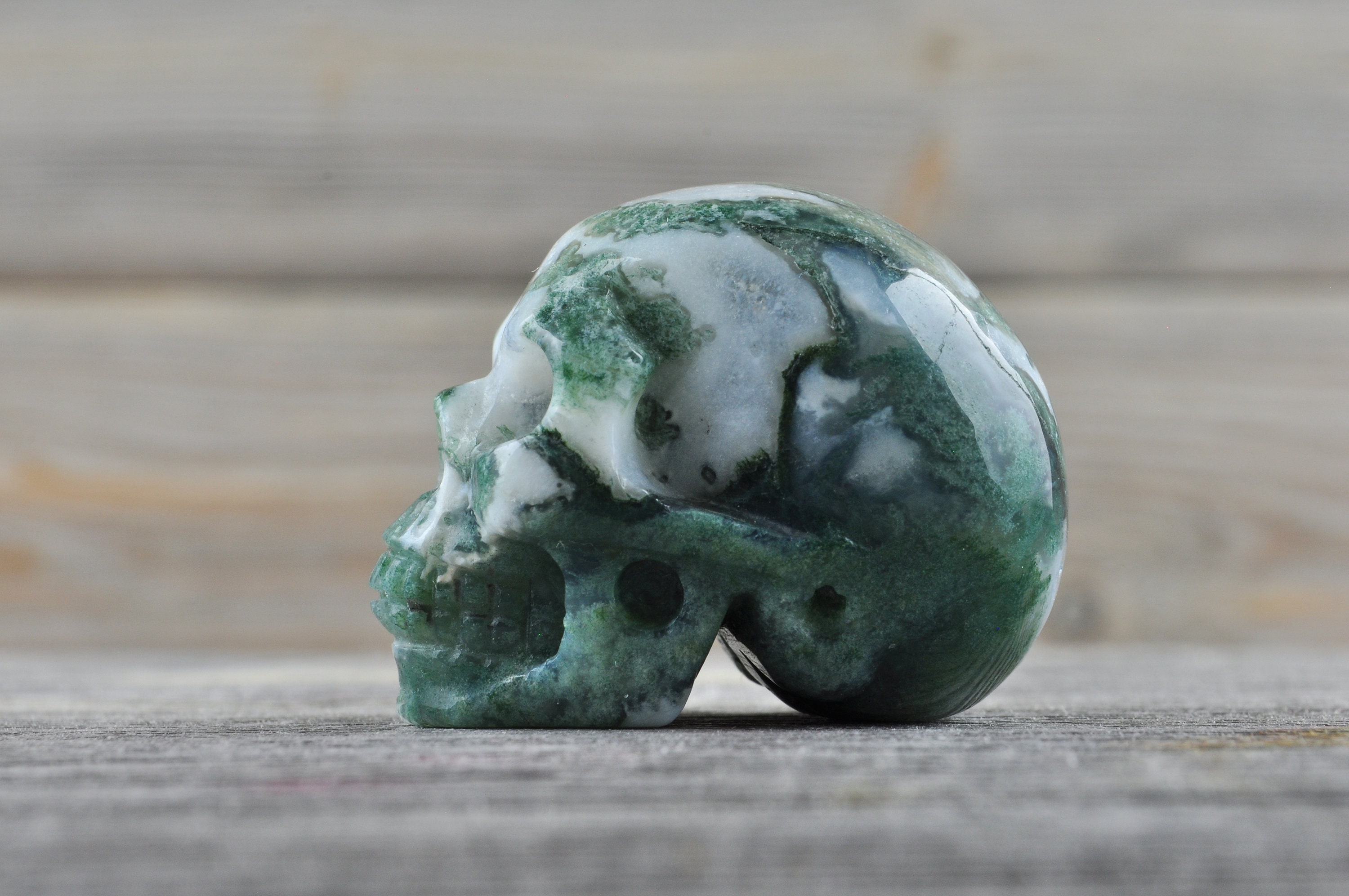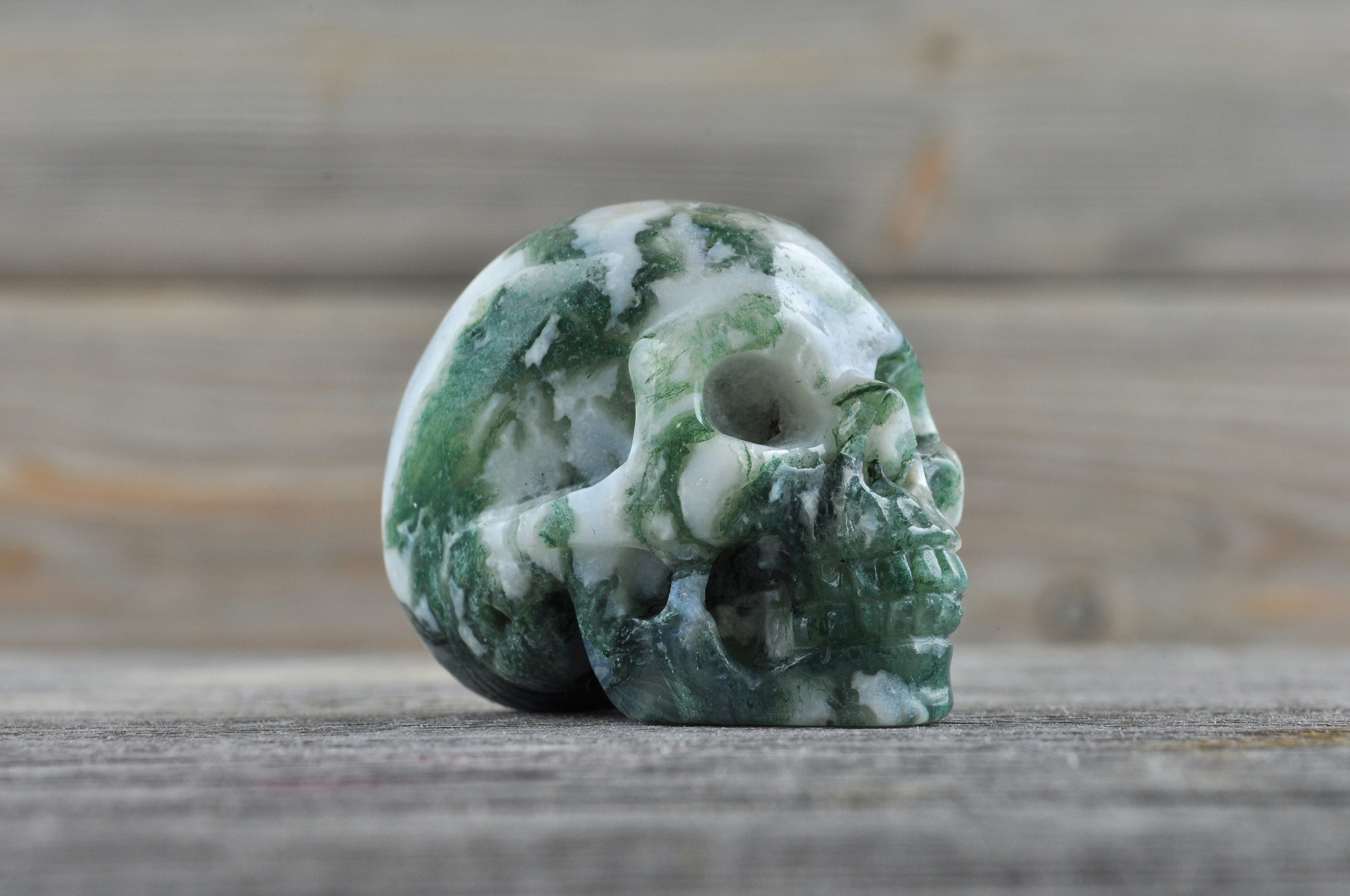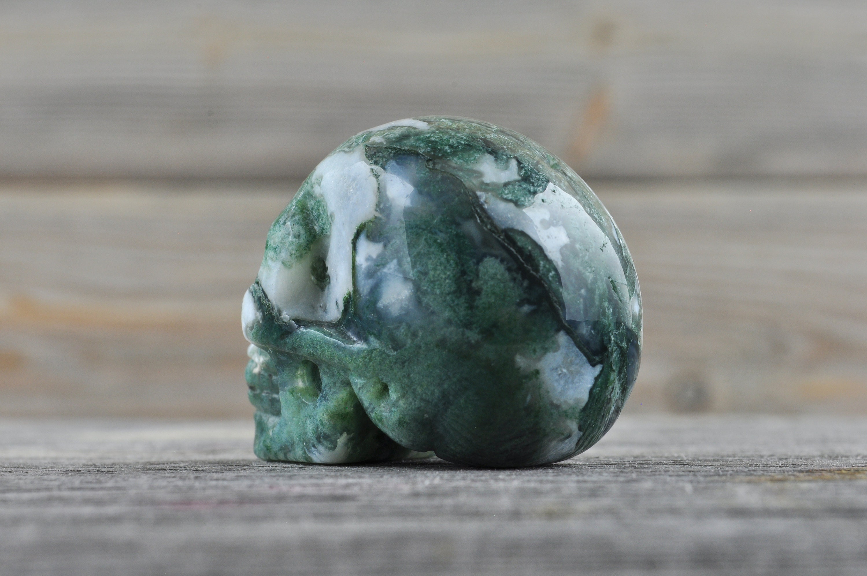 I love my skull! I received my items quickly and they were wrapped very securely. Such great moss agate. He has beautiful detail and is so polished and shiny. Thank you!