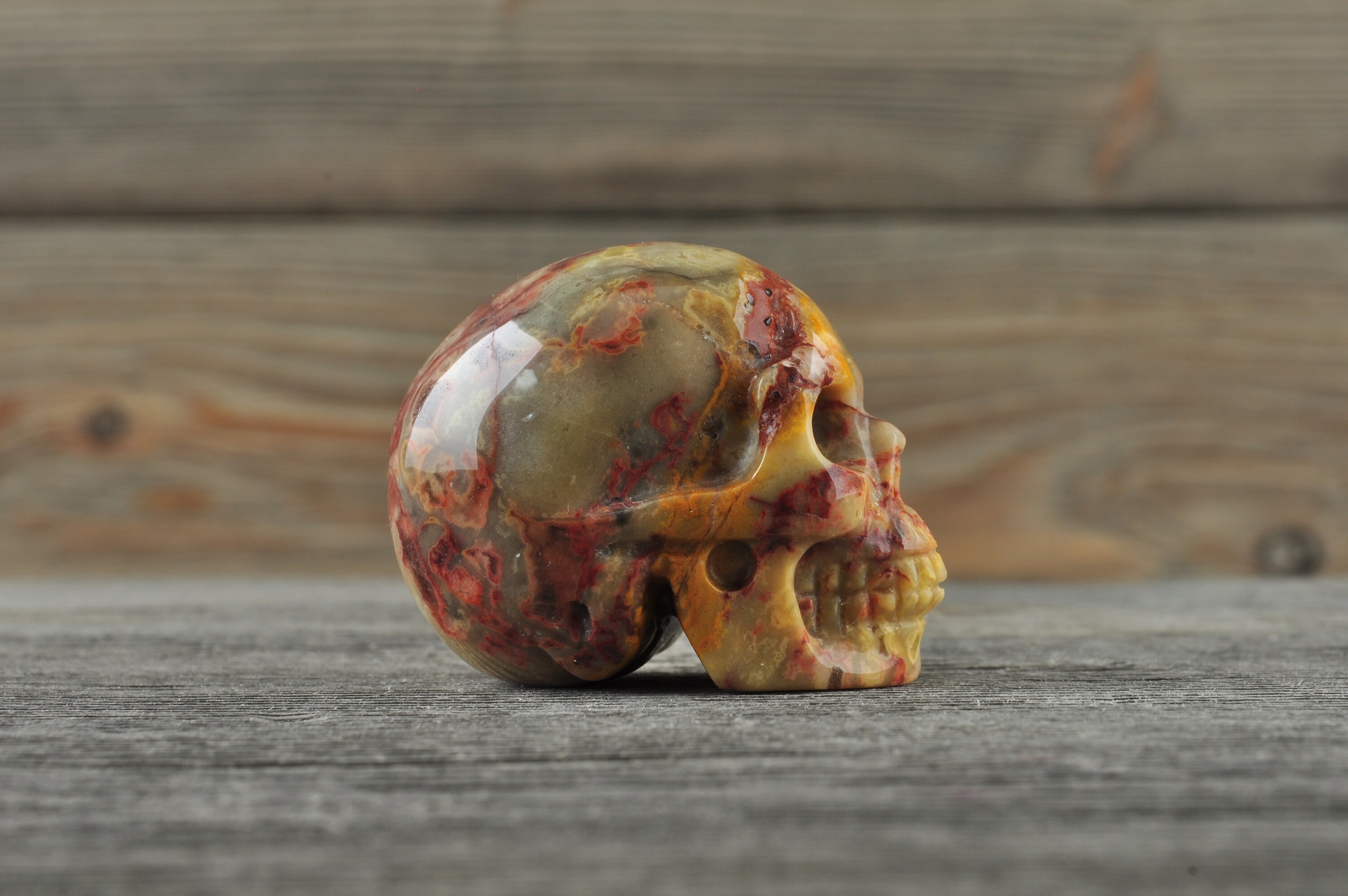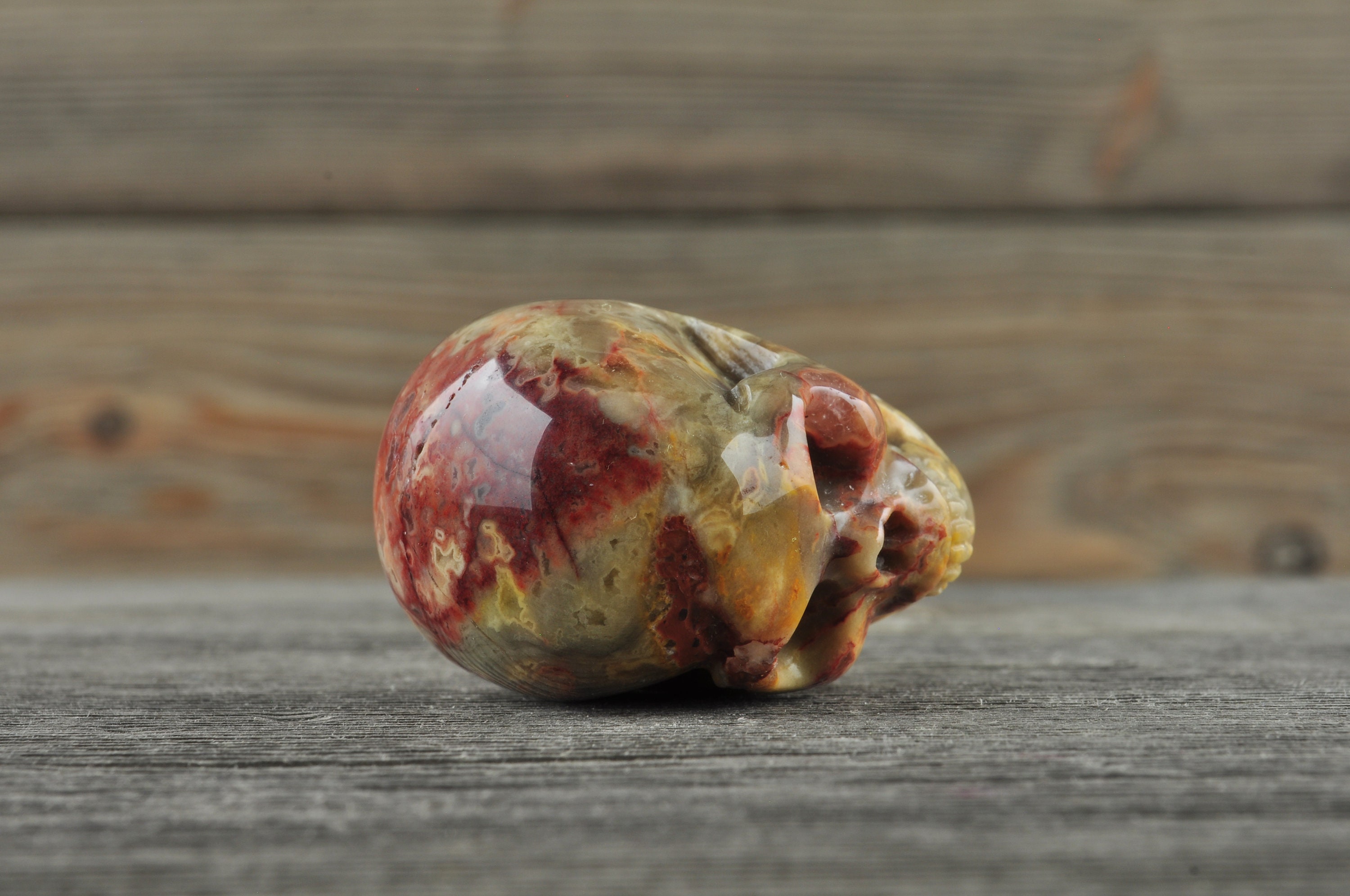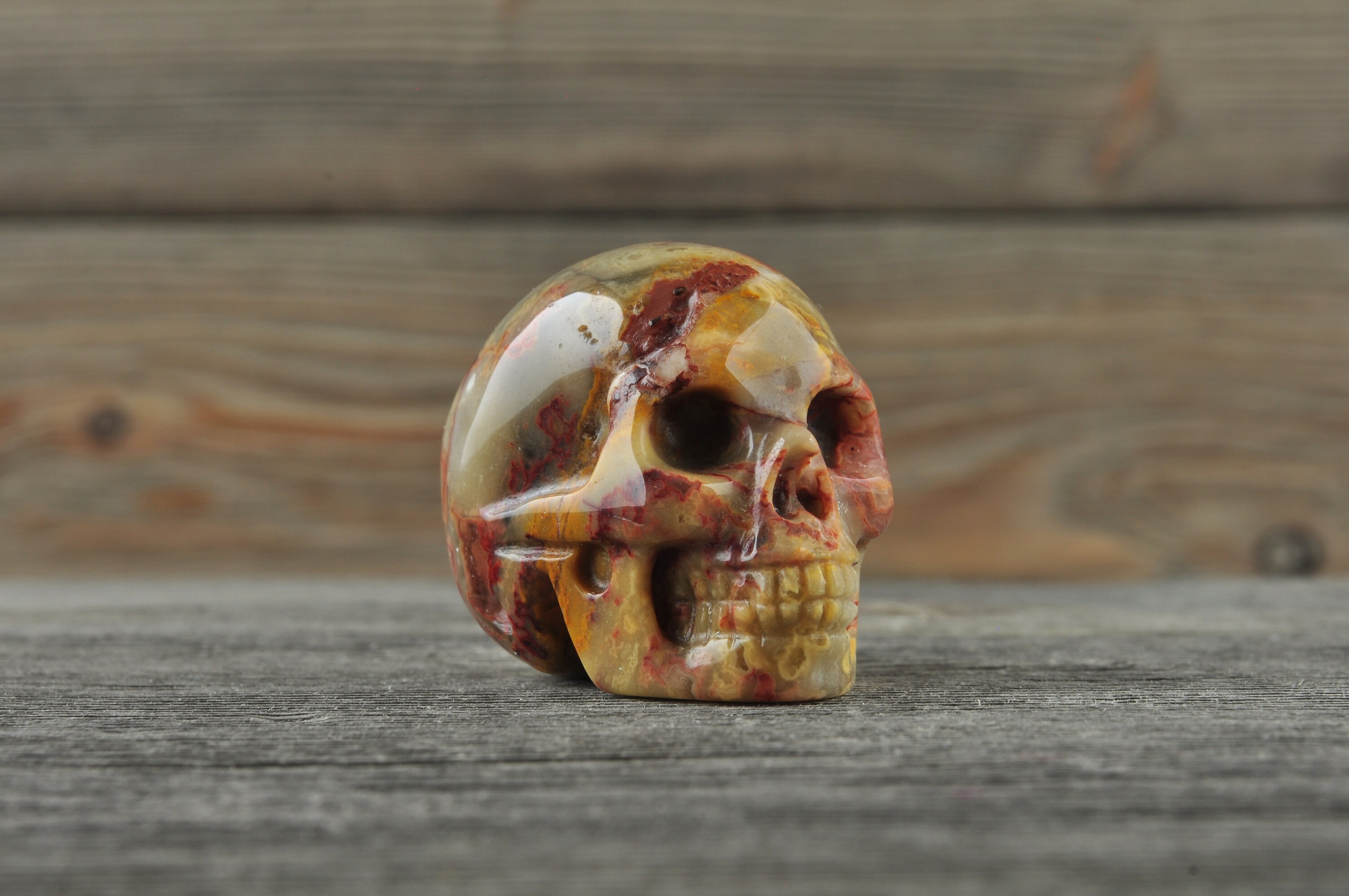 Beautiful, realistic natural, Crazy Lace Agate skull.