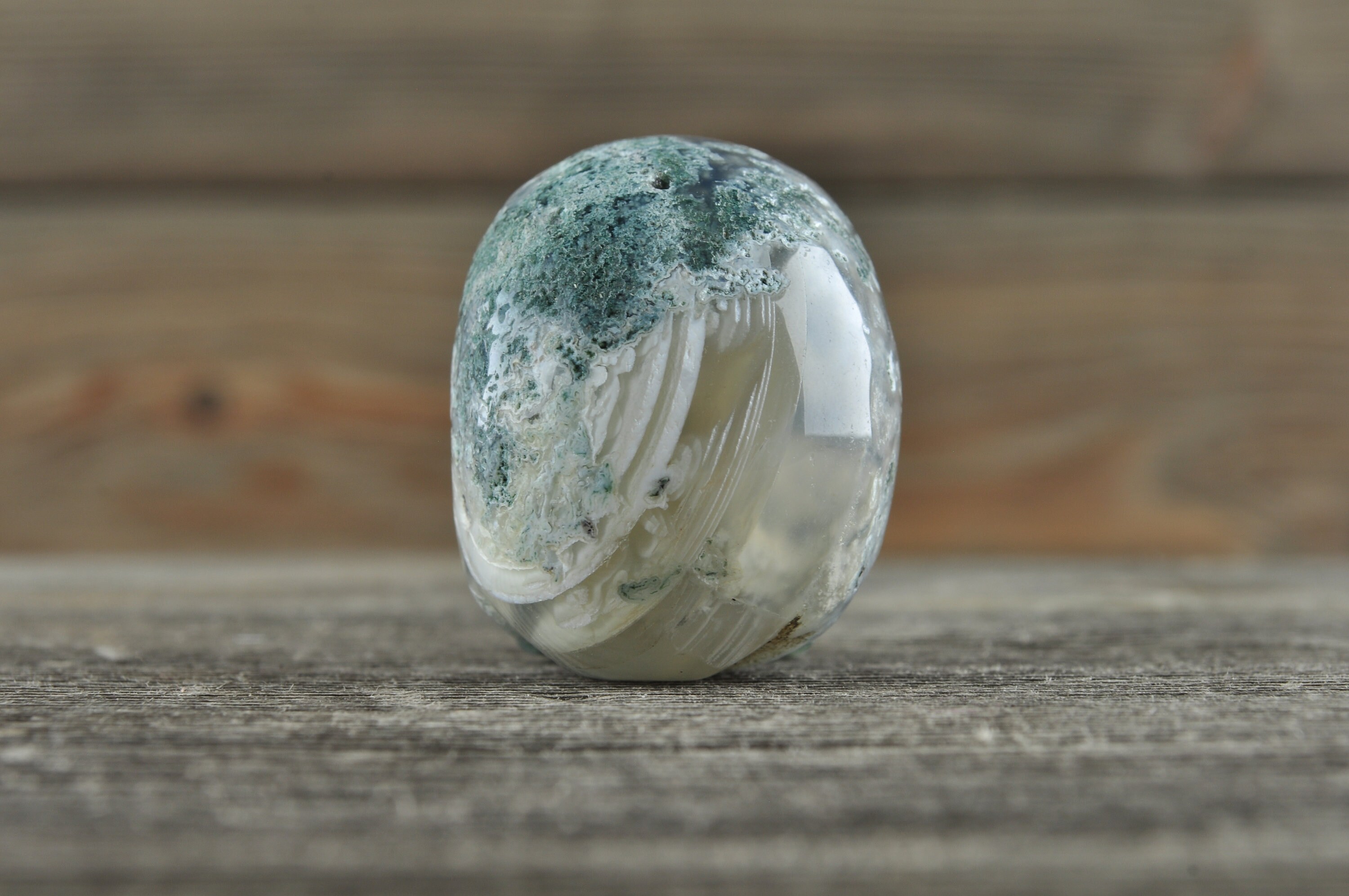 Moss Agate is associated with nature, agriculture, and new beginnings. Moss Agate is also associated with nature spirits and bringing Earth energy into its healing. The gentle, nurturing energy of Moss Agate encourages the user to appreciate and enjoy each moment on Earth, and assists the planet in its healing as well.