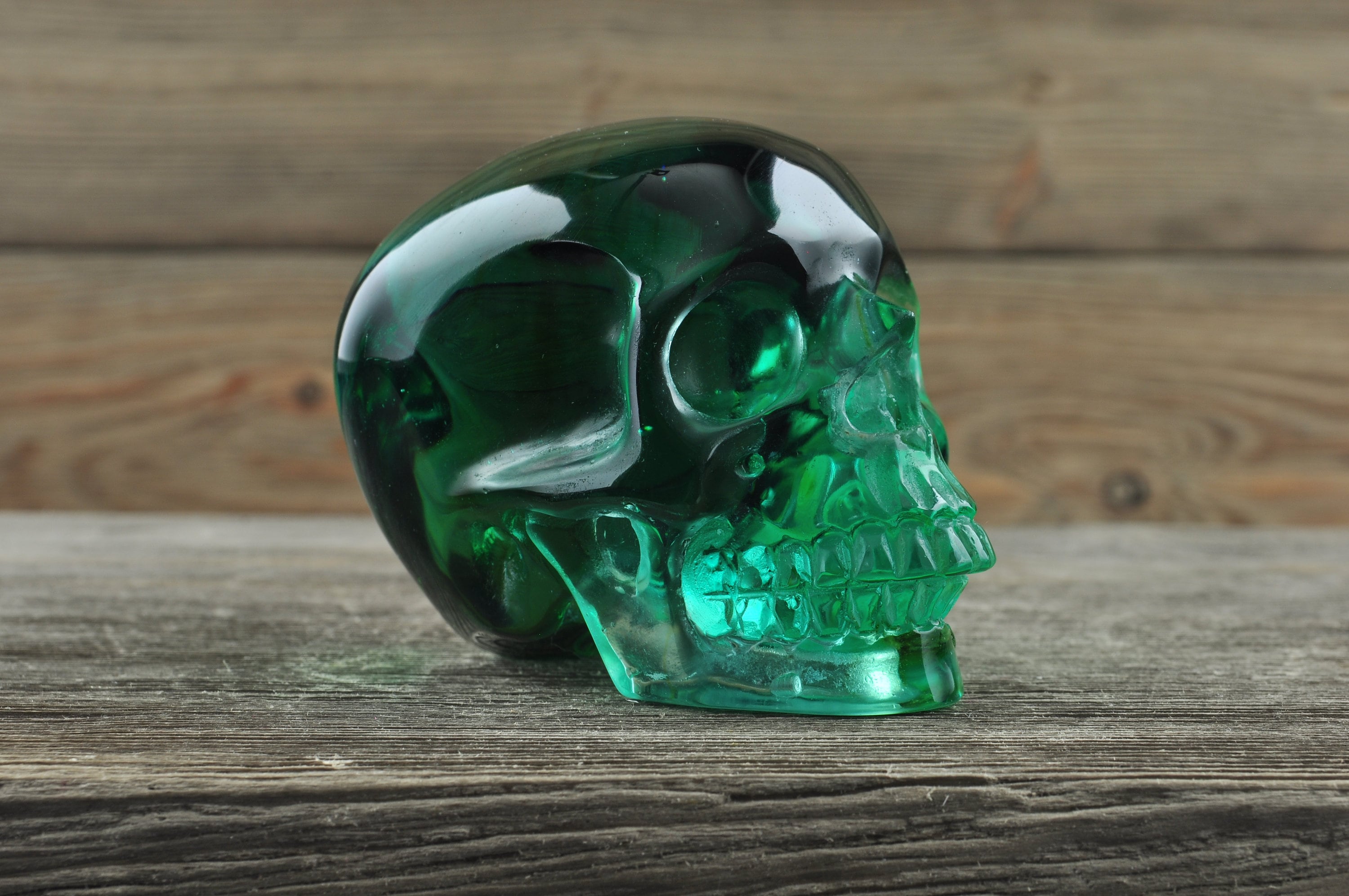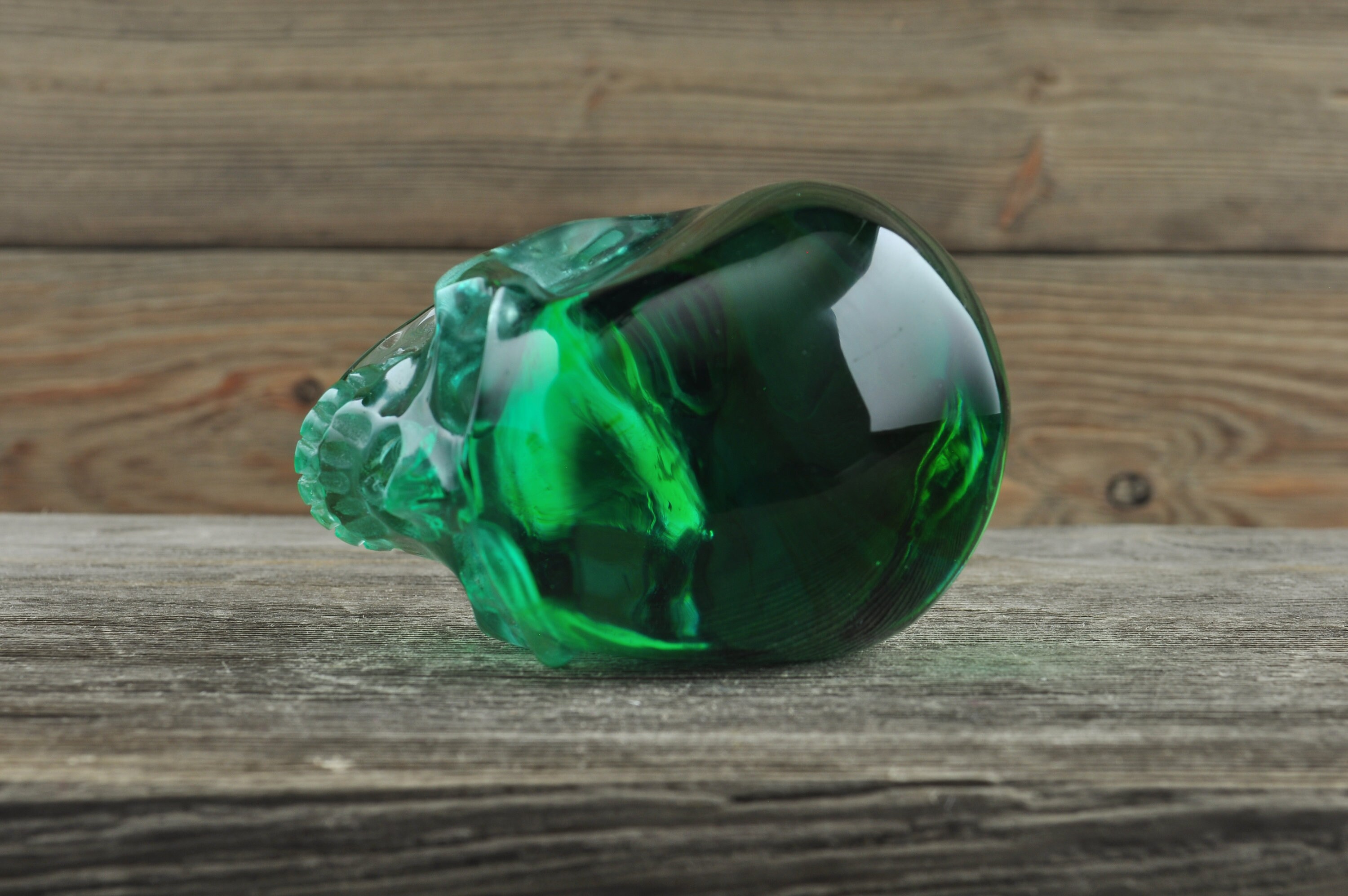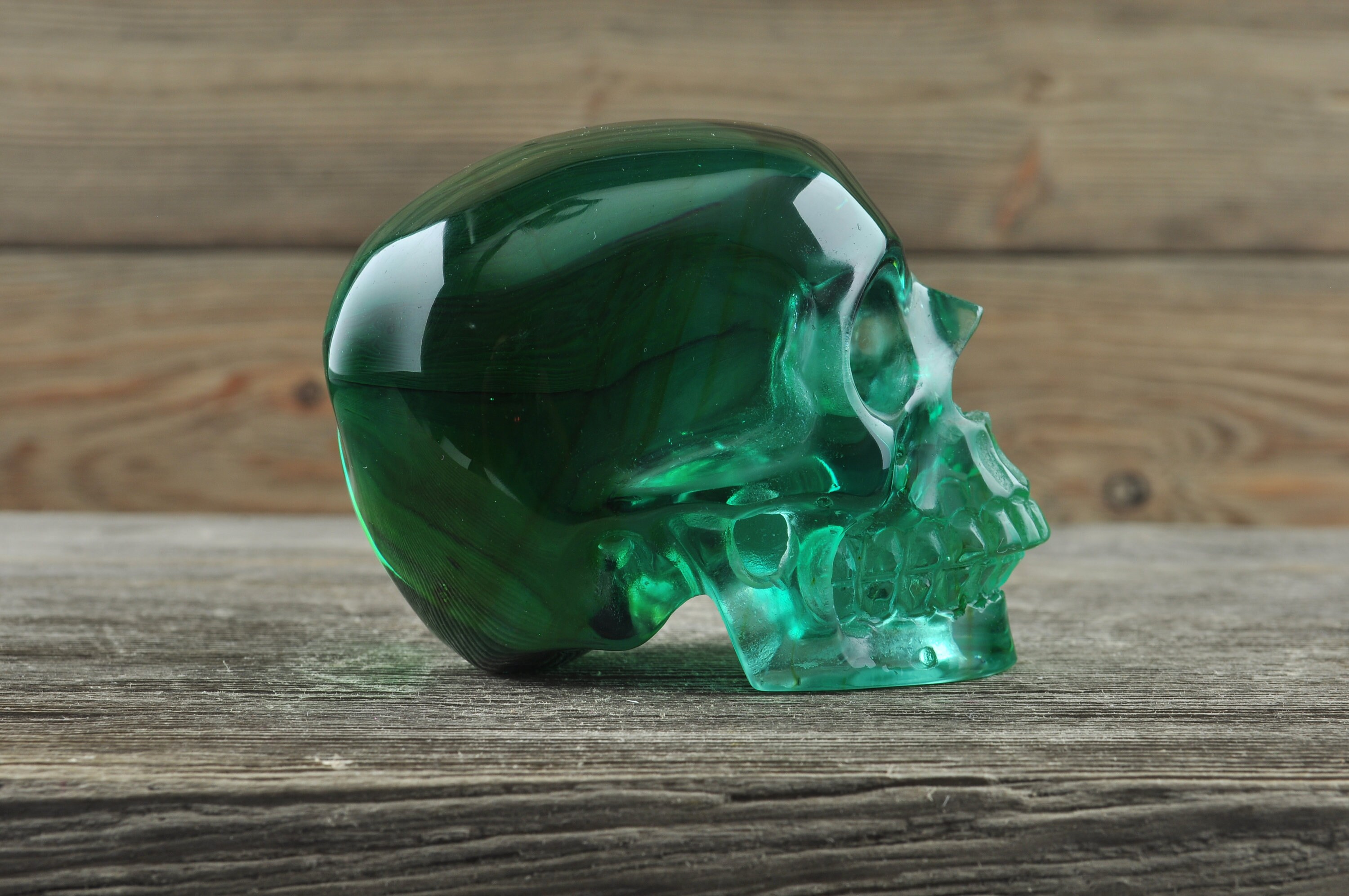 This super realistic natural Green Obsidian skull. A truly unique and beautiful piece!