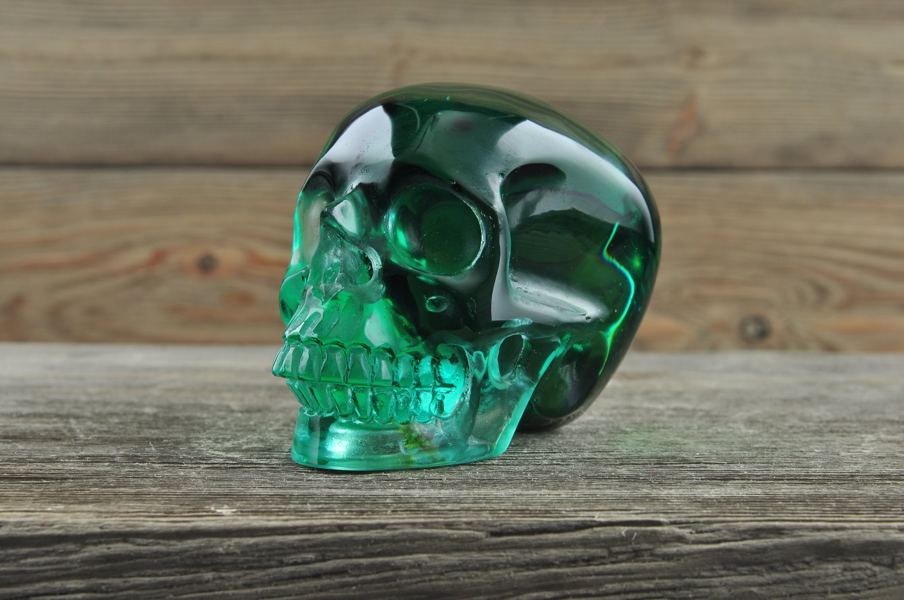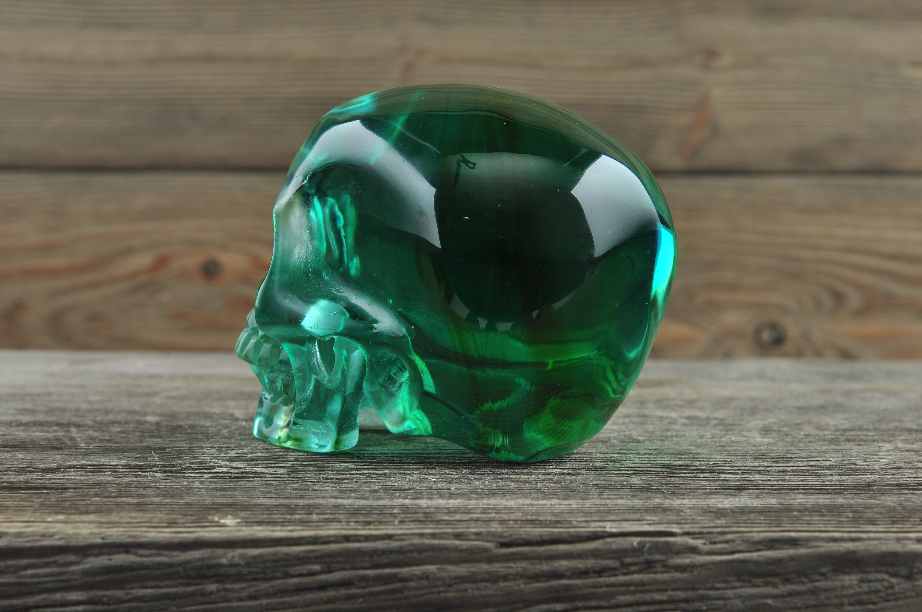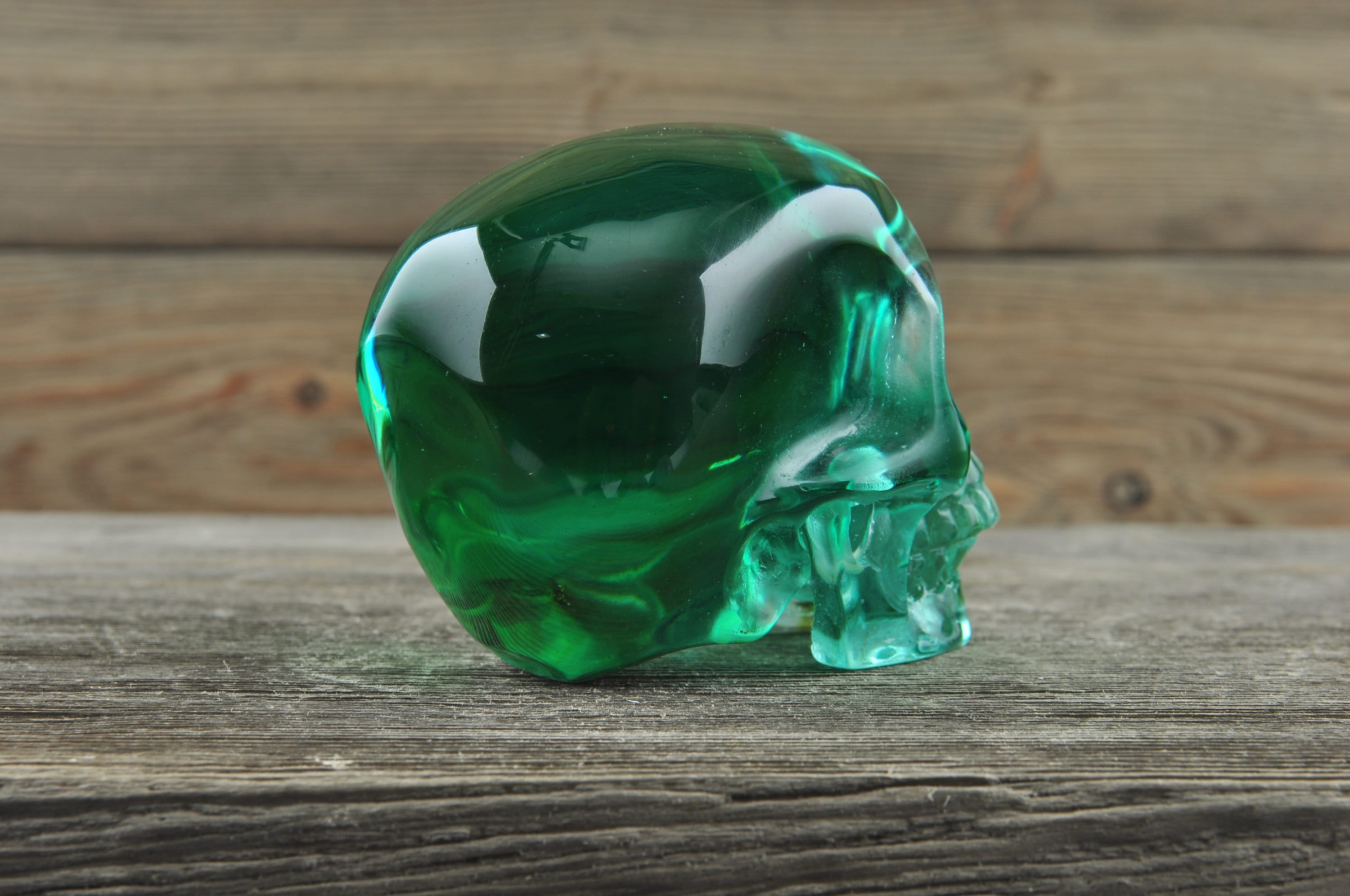 This super realistic natural Green Obsidian skull. A truly unique and beautiful piece!